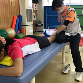 当日は天候も良く、約200名の選手にお越しいただき、マッサージやストレッチ指導・テーピング等を施行させていただきました。