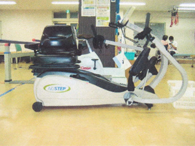 エルゴメーター(自転車)・ニューステップ等の全身運動マシンで持久力の向上を図ります。