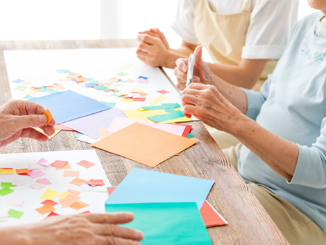 当院では、「リハビリや食事以外の時間帯もできるだけベッドから離れて過ごしましょう!」をテーマに、病棟内の「院内デイサービス」で運動や趣味活動、様々なイベントを企画し、楽しみながら活動する場を提供しています。