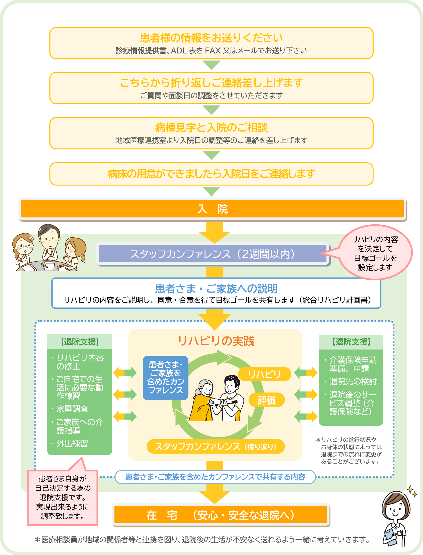 - ご入院の相談は、当院の地域連携室(0480-61-3122)までお問い合わせ下さい。