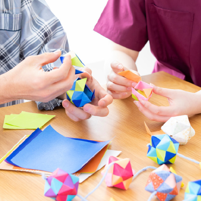 生活のリハビリ - 入院前の生活となるべく近い状態に戻れるように、患者さまごとに違った生活動作(着替え・排泄・入浴など)のリハビリを行います。洗濯・掃除・調理のほか、趣味や創作活動などの楽しみもリハビリの一環として行います。