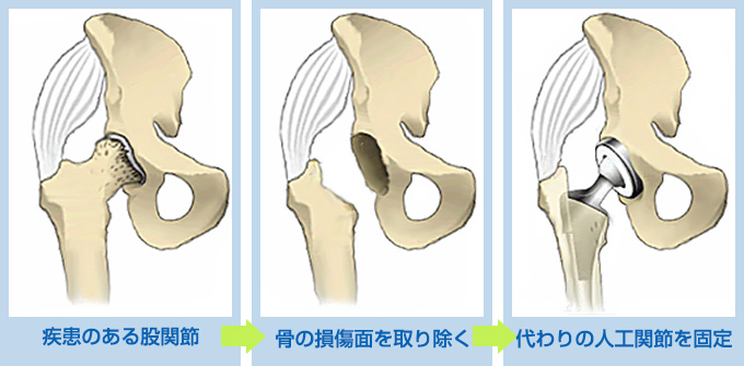 手術治療は、進行期以上の変形性股関節症に対しては、人工股関節置換術がもっとも効果があり、治療成績も安定しています。