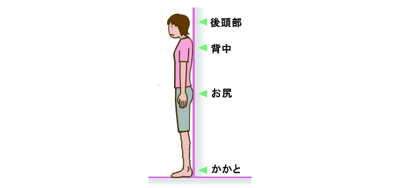 Qかかと、お尻、背中を壁につけて立ったとき、後頭部が壁につきますか?