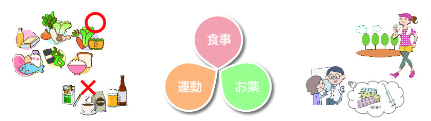 食事・運動・薬物療法が、骨粗しょう症治療の3本柱です